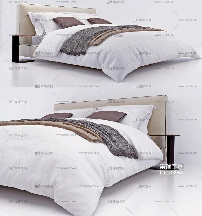 现代布艺双人床 3d模型下载 [模型ID:103968]