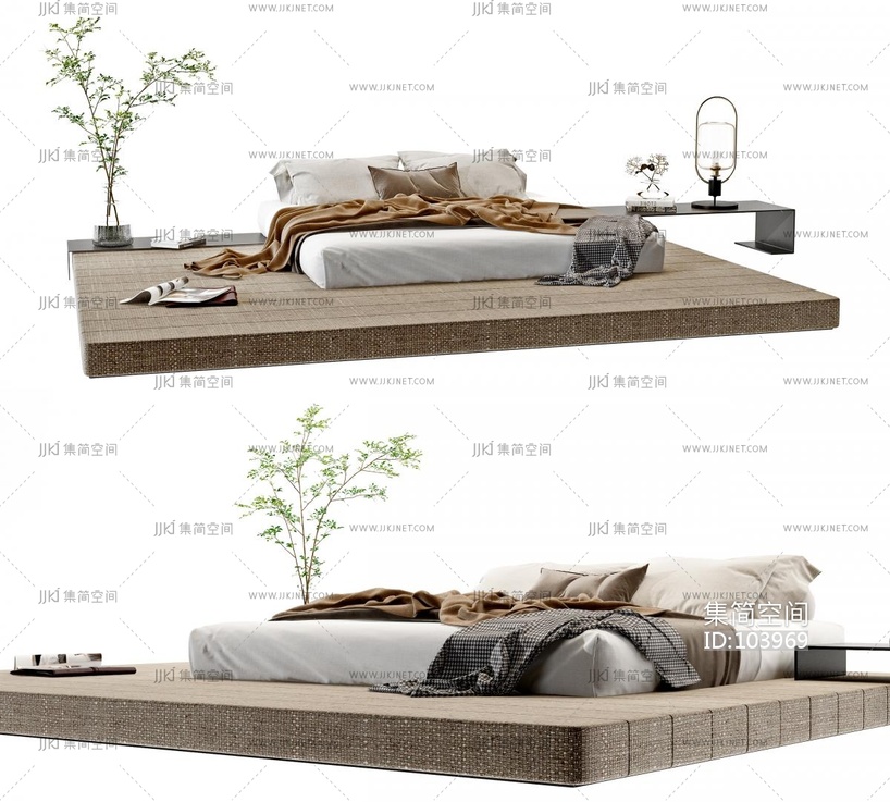 现代榻榻米双人床 3d模型下载 [模型ID:103969]