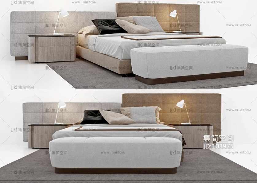 现代布艺双人床,床具组合 3d模型下载 [模型ID:103975]