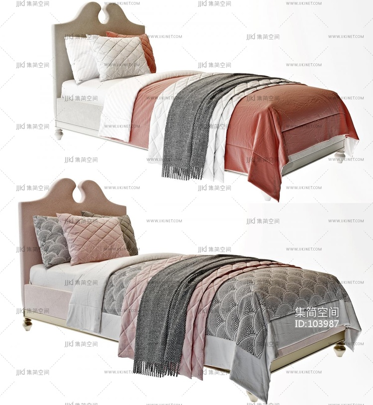 现代布艺单人床,床具,儿童床, 3d模型下载 [模型ID:103987]