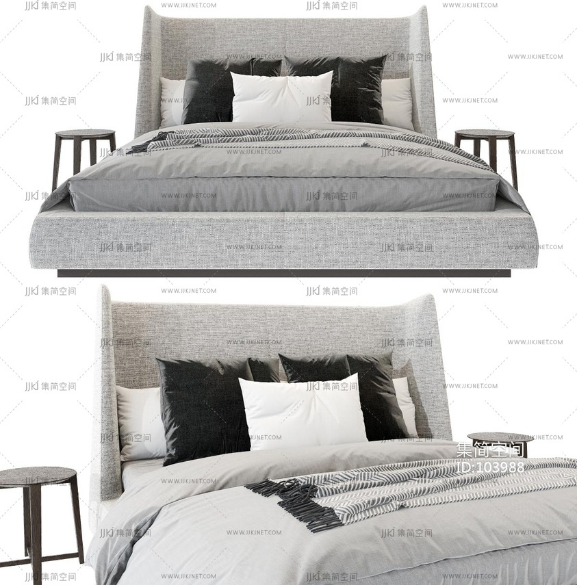 现代布艺双人床,床具组合 3d模型下载 [模型ID:103988]
