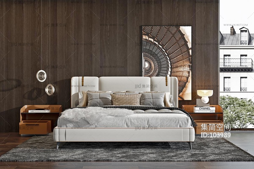 现代布艺双人床,床具组合 3d模型下载 [模型ID:103989]