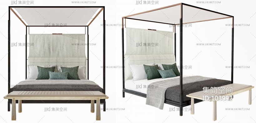 新中式木架子布艺双人床 3d模型下载 [模型ID:103992]