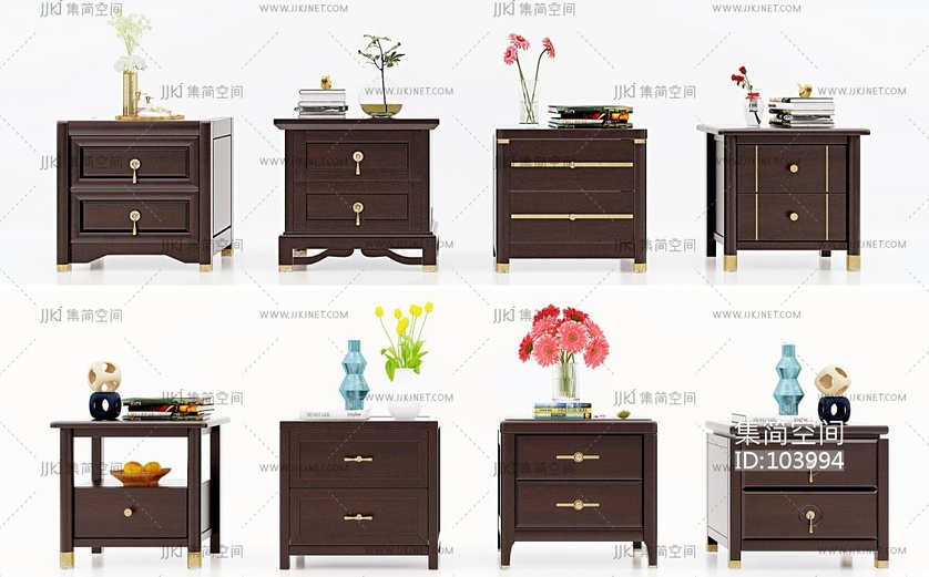 新中式美式实木床头柜组合 3d模型下载 [模型ID:103994]