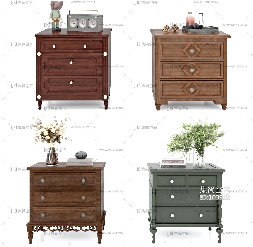美式欧式木质床头柜 3d模型下载 [模型ID:103996]