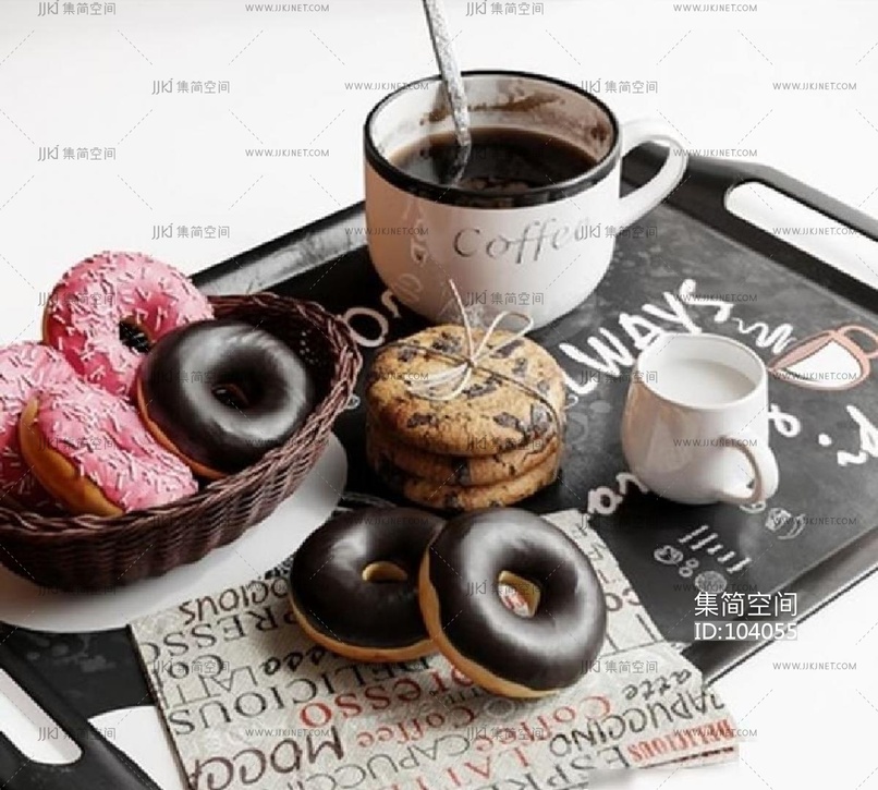 02咖啡,甜甜圈,食物,饮品 3d模型下载 [模型ID:104055]