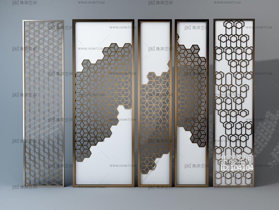 新中式现代轻奢隔断,屏风,铜制雕花,花格 3d模型下载 [模型ID:104104]