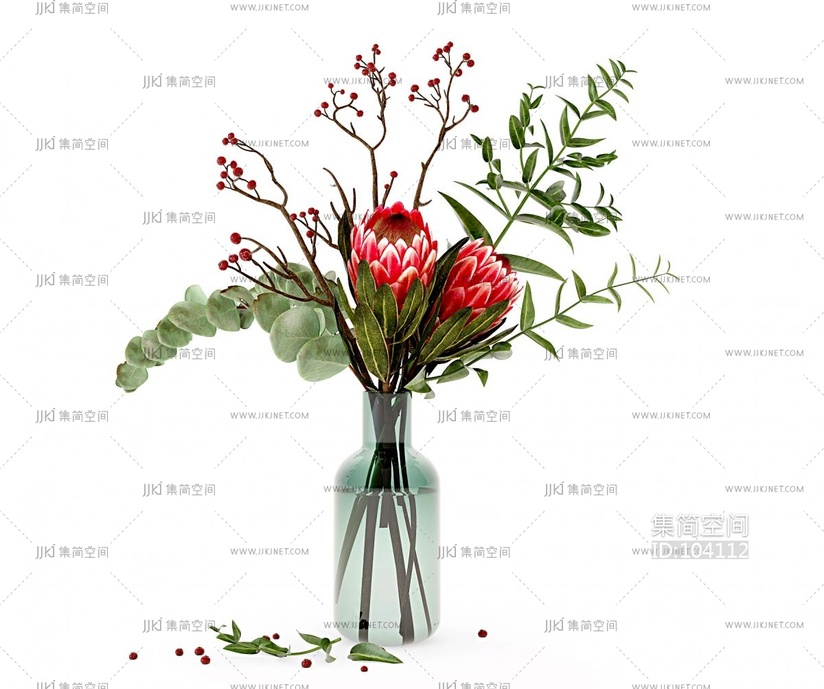 现代玻璃花瓶插花,花艺 3d模型下载 [模型ID:104112]