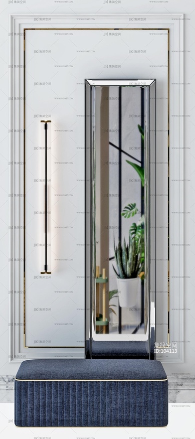 现代布艺换鞋凳,沙发凳,镜子,壁灯组合 3d模型下载 [模型ID:104113]