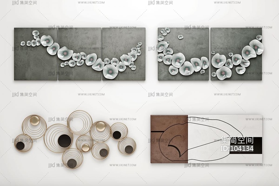 新中式现代墙饰组合 3d模型下载 [模型ID:104134]