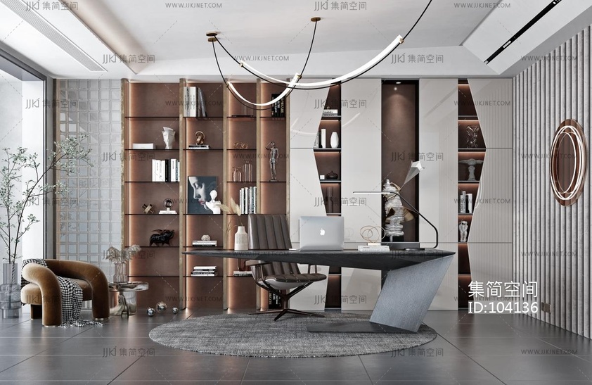 现代轻奢书房 3d模型下载 [模型ID:104136]