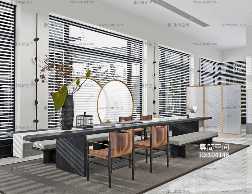 新中式茶室茶台 3d模型下载 [模型ID:104146]