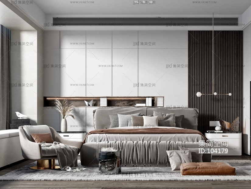 现代卧室, 3d模型下载 [模型ID:104179]