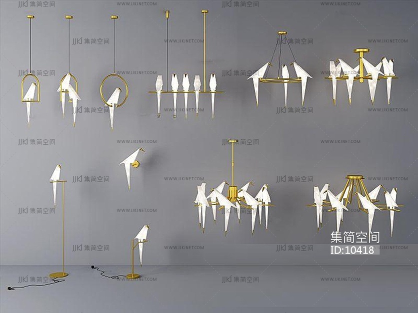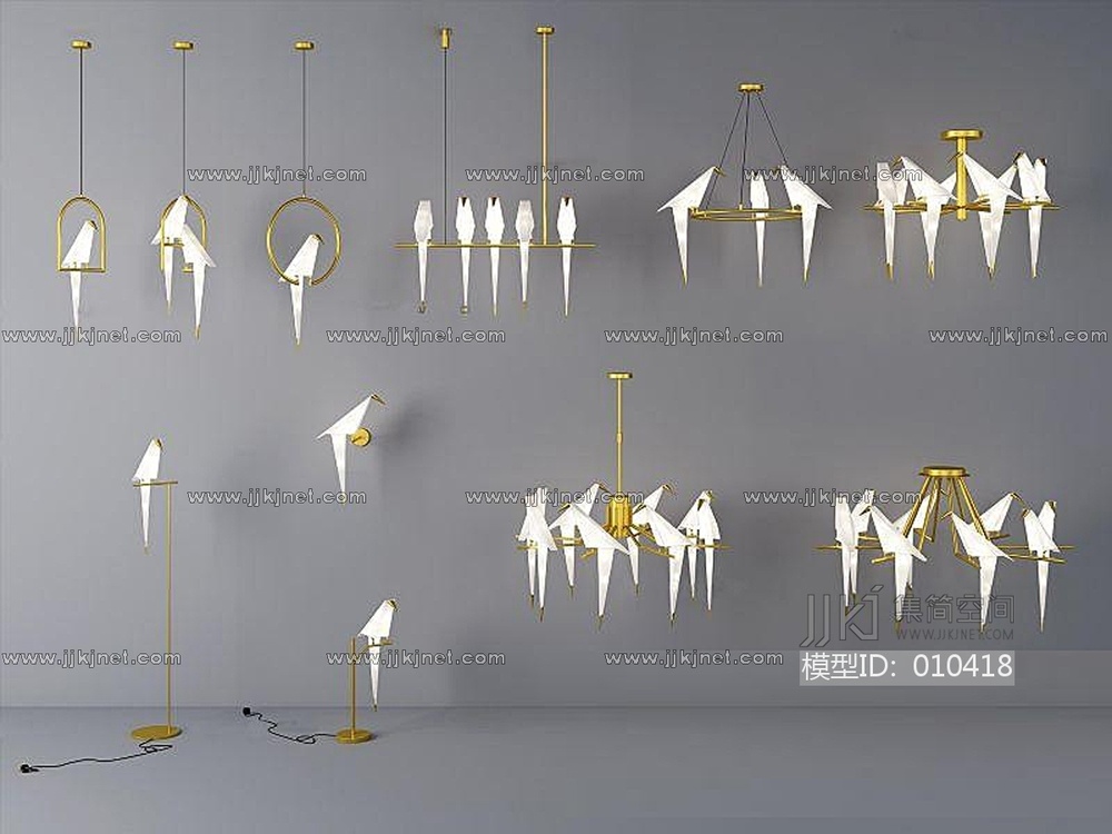 现代千纸鹤小鸟吊灯壁灯台灯落地灯组合国外 3d模型下载 [模型ID:10418]