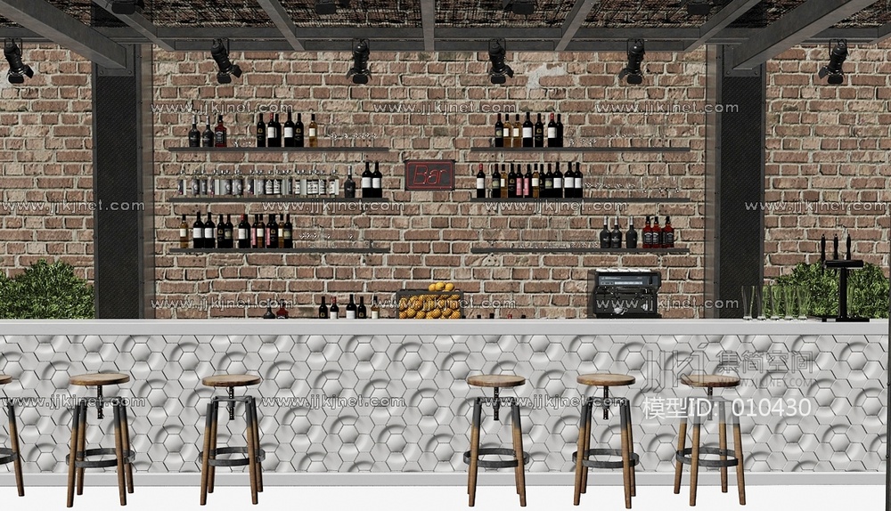 05北欧风格吧台酒吧台咖啡厅 3d模型下载 [模型ID:10430]