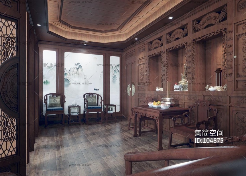95-1104中式佛堂3d模型下载