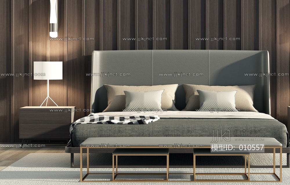 H14-1108现代床组合 3d模型下载 [模型ID:10557]
