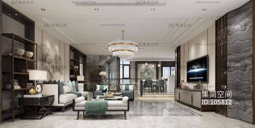 新中式别墅客厅餐厅 3d模型下载 [模型ID:105812]
