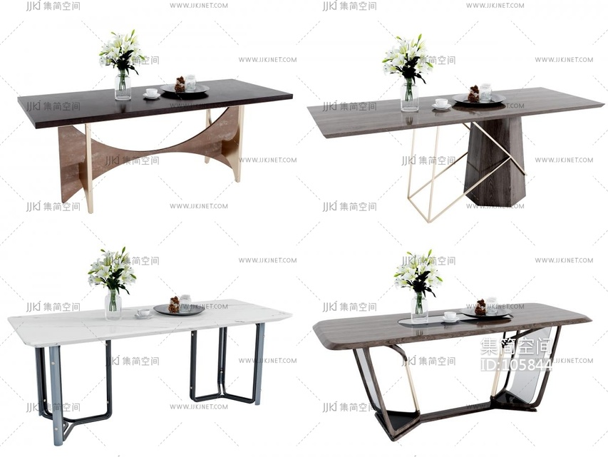 现代长餐桌组合 3d模型下载 [模型ID:105844]