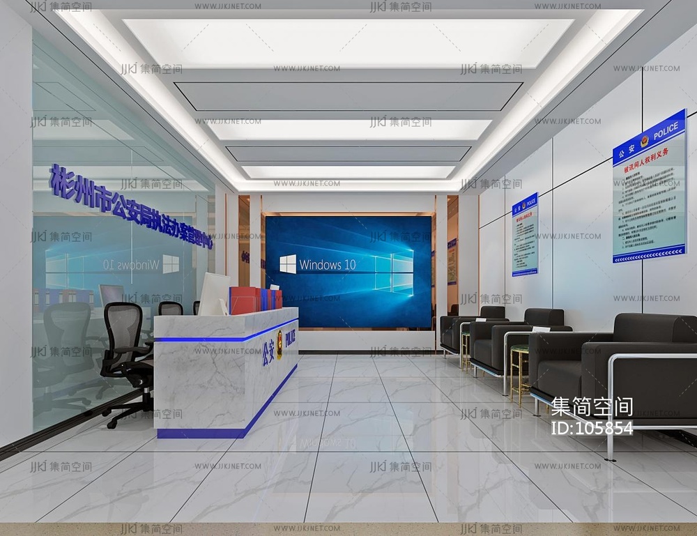 现代公安机关警察局会议室 ,研判室,审讯室,接待室,走廊 3d模型下载 [模型ID:105854]