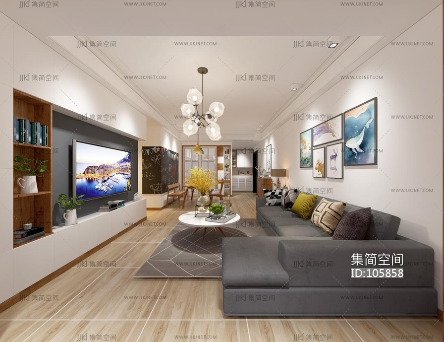现代客餐厅 3d模型下载 [模型ID:105858]