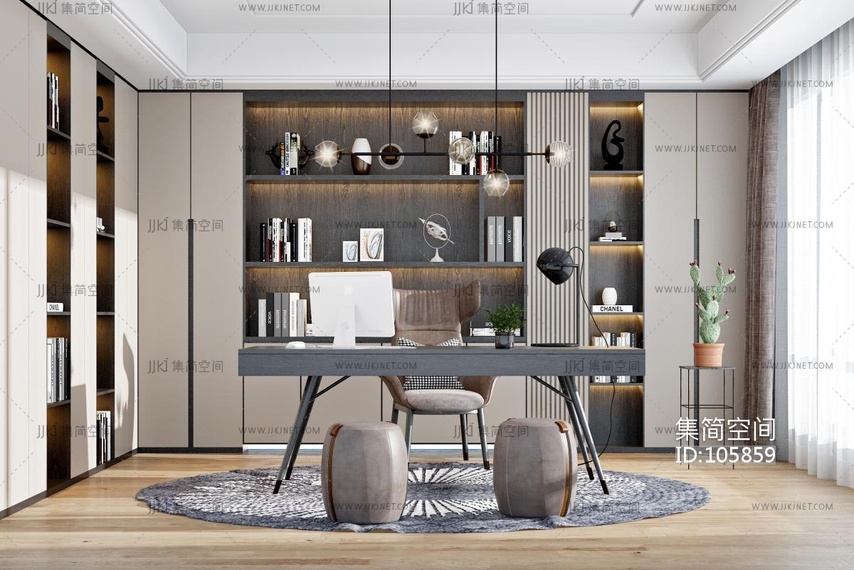 现代书房 3d模型下载 [模型ID:105859]