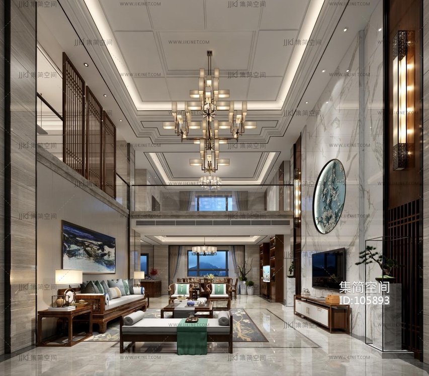 中式别墅客厅 3d模型下载 [模型ID:105893]