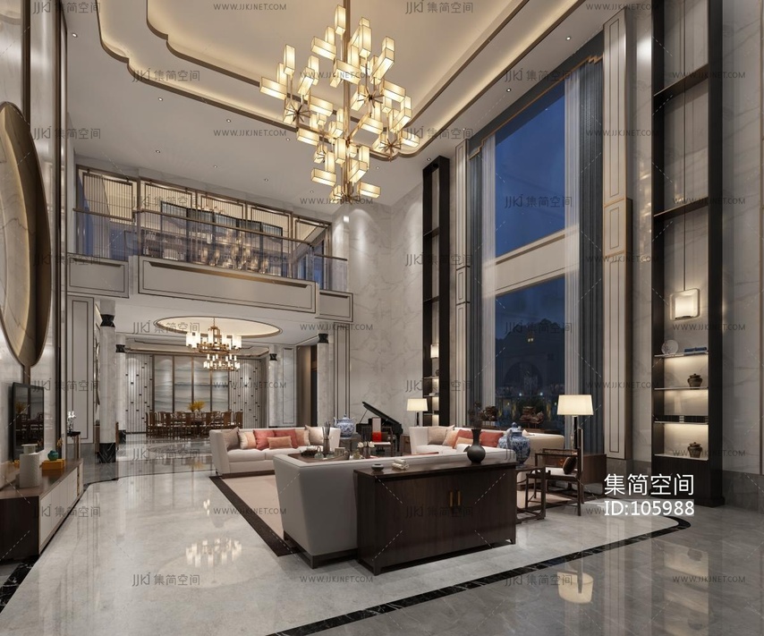 中式别墅客厅 3d模型下载 [模型ID:105988]