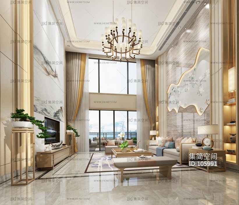 中式别墅客厅 3d模型下载 [模型ID:105991]