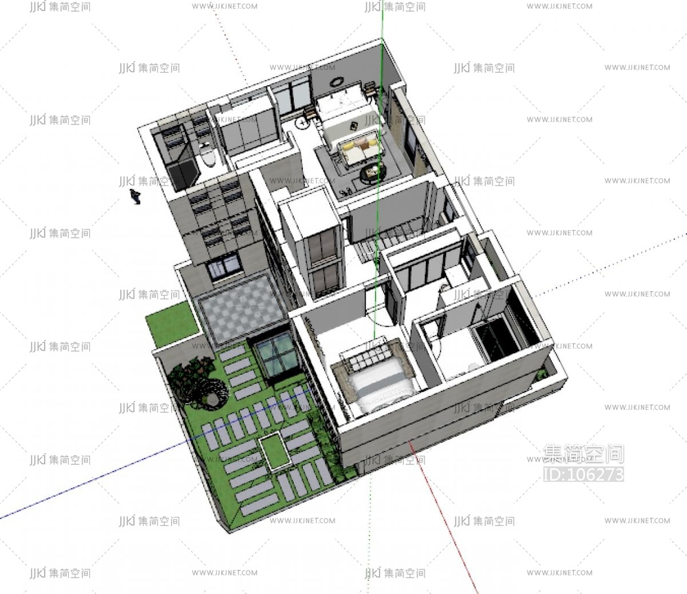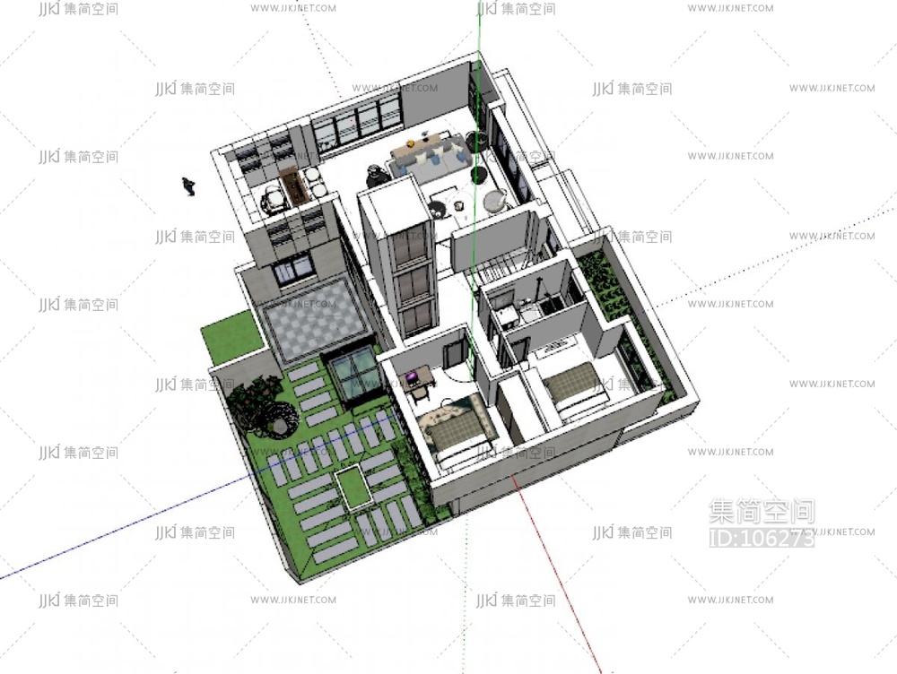 现代别墅家装整体轴侧鸟瞰图方案庭院 (1) su草图模型下载