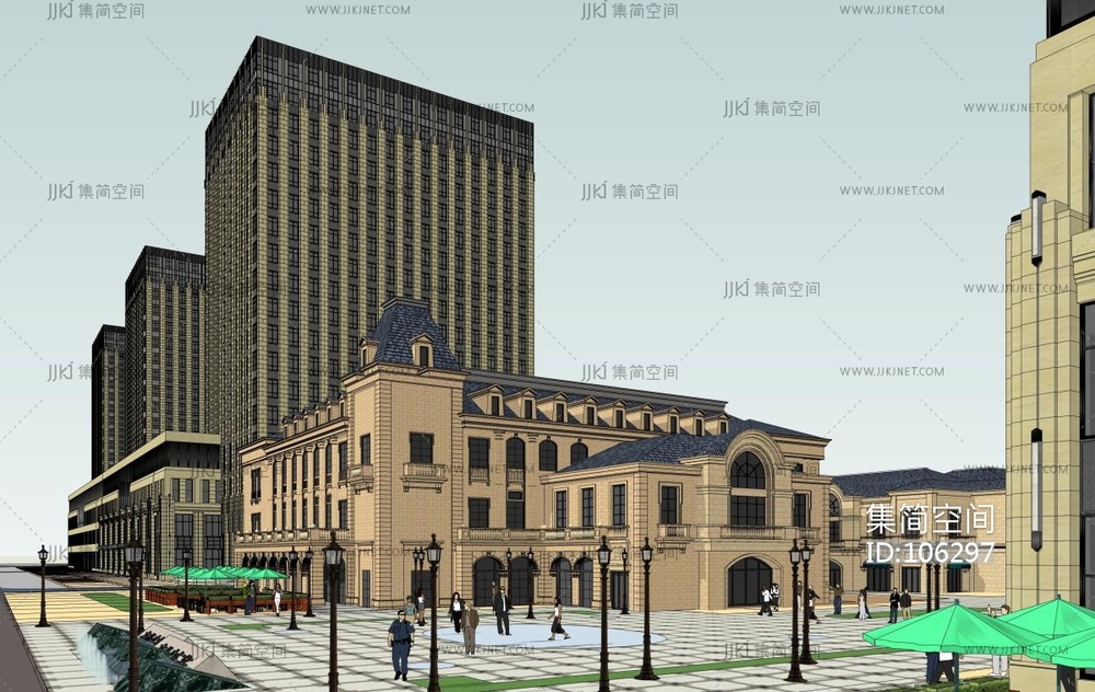 法式欧式建筑商业街 步行街 (1) su草图模型下载 [模型ID:106297]