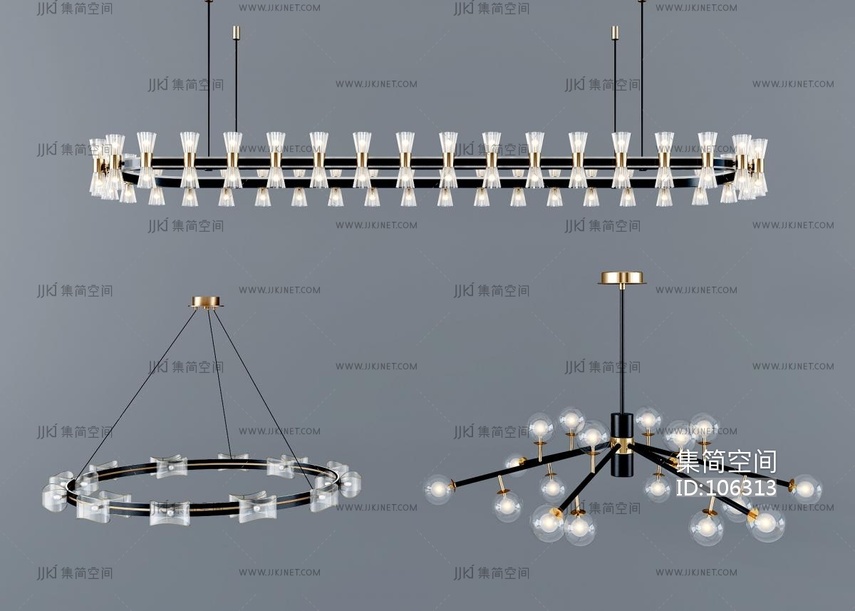 现代金属玻璃吊灯组合 3d模型下载 [模型ID:106313]