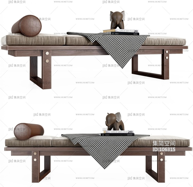 新中式床尾踏 3d模型下载 [模型ID:106315]