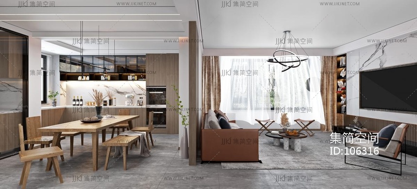 现代客餐厅 3d模型下载 [模型ID:106316]
