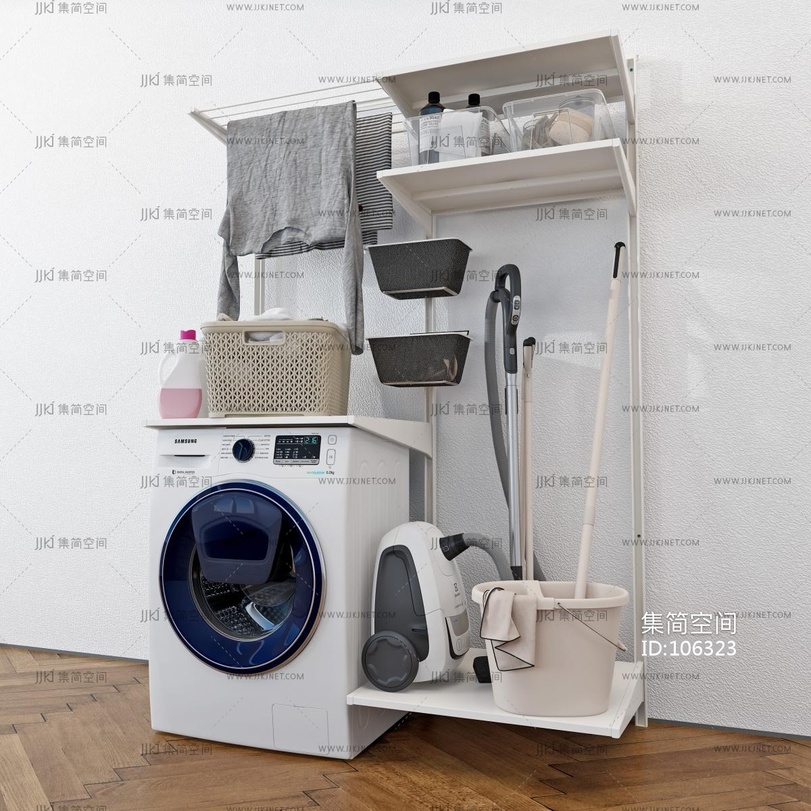 现代阳台洗衣机日用品摆件组合 3d模型下载 [模型ID:106323]