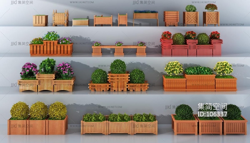 欧式木质花槽花池花箱 3d模型下载 [模型ID:106337]