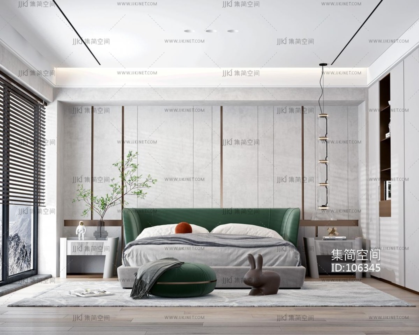 卧室,轻奢,暗黑风,现代轻奢卧室双人床,懒人沙发法式卧室3d模型下载