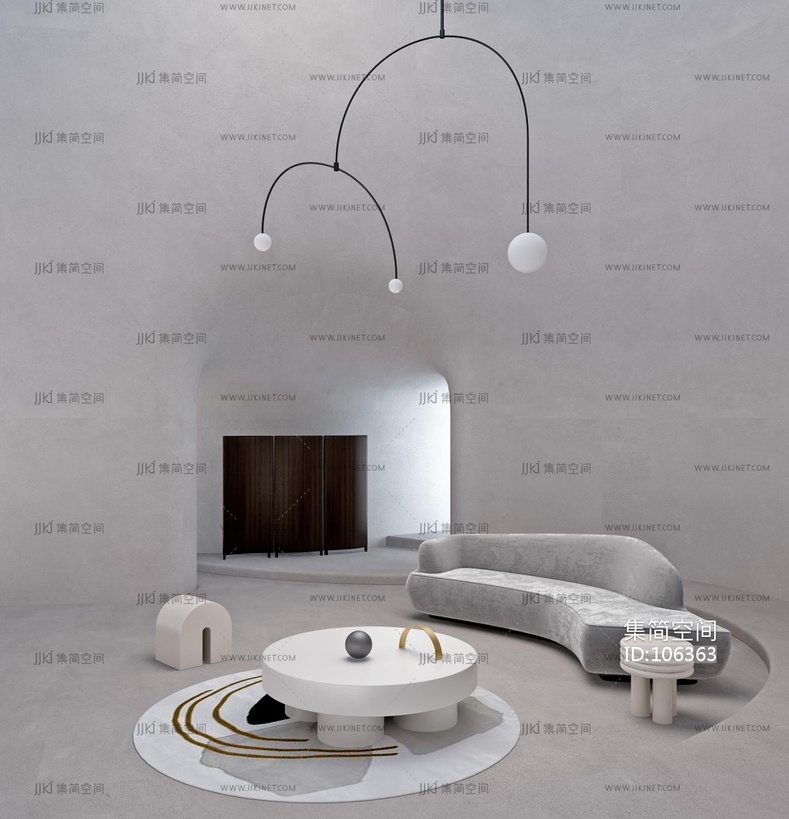 现代弧形异形沙发茶几组合 3d模型下载 [模型ID:106363]