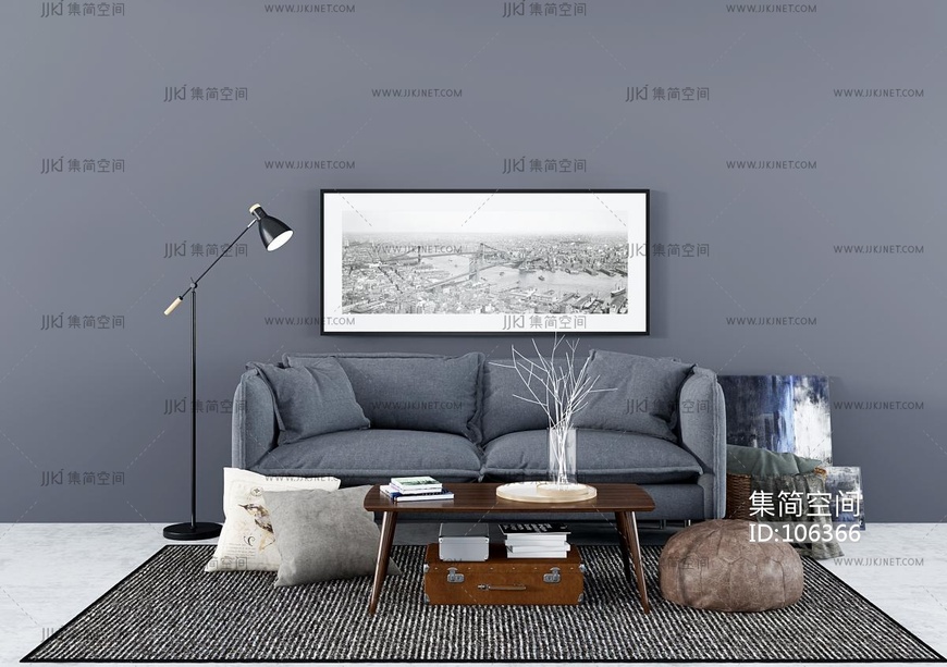 北欧沙发茶几组合 3d模型下载 [模型ID:106366]