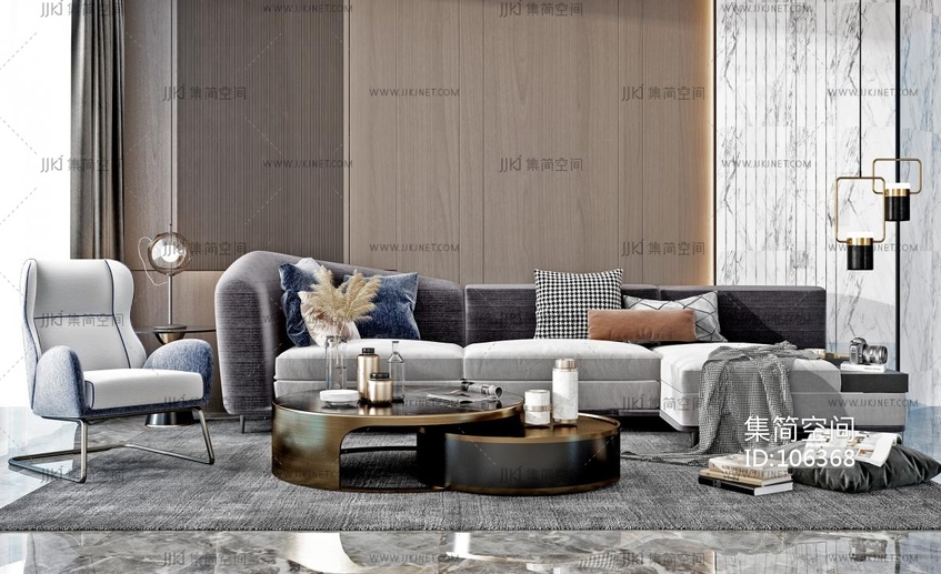 现代转角沙发茶几组合 3d模型下载 [模型ID:106368]