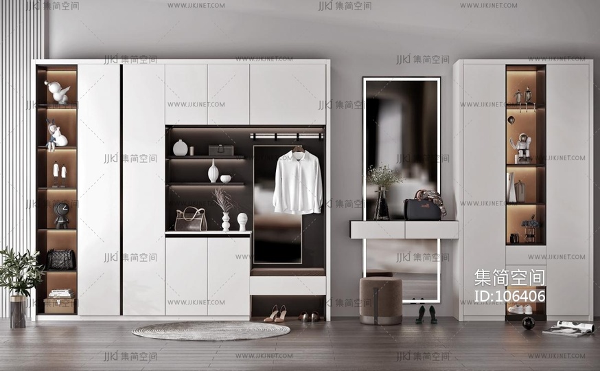 现代入户玄关鞋柜衣橱衣柜 3d模型下载 [模型ID:106406]