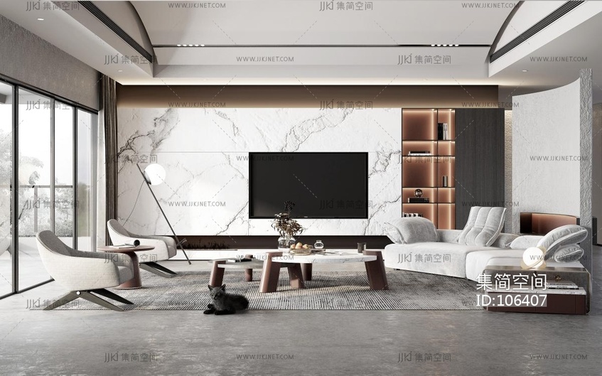 现代时尚客厅, 3d模型下载 [模型ID:106407]