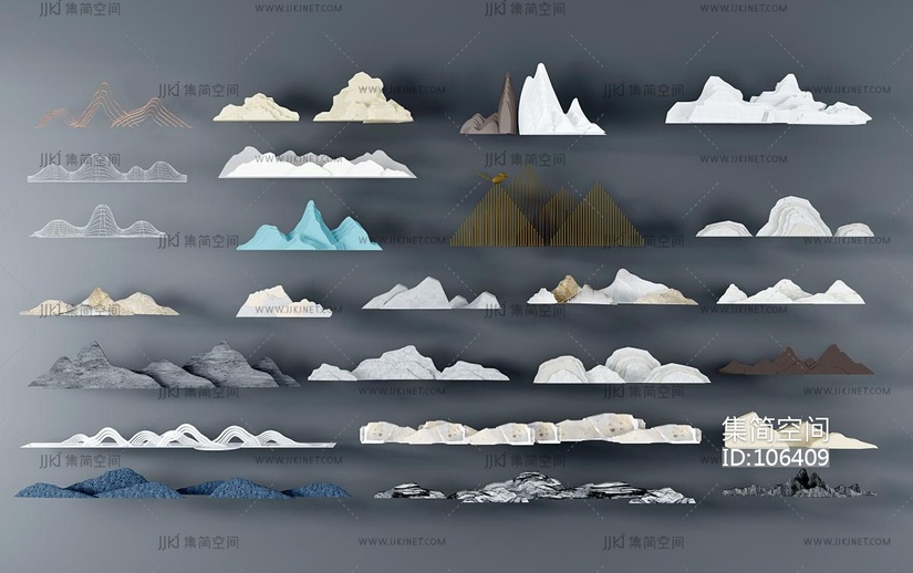 新中式假山山脉片石,雕塑,户外小品 3d模型下载 [模型ID:106409]
