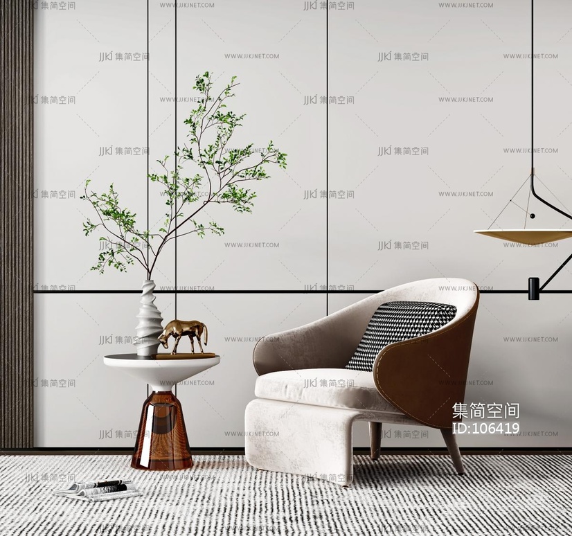 现代单人沙发边几组合 3d模型下载 [模型ID:106419]