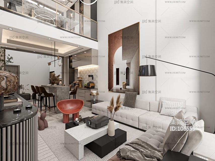 现代别墅客厅 3d模型下载 [模型ID:106559]