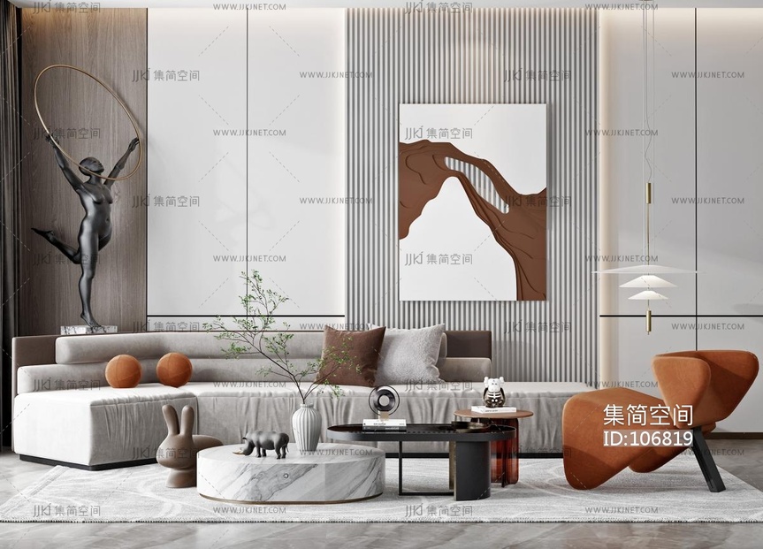 现代客厅,弧形沙发茶几组合 3d模型下载 [模型ID:106819]