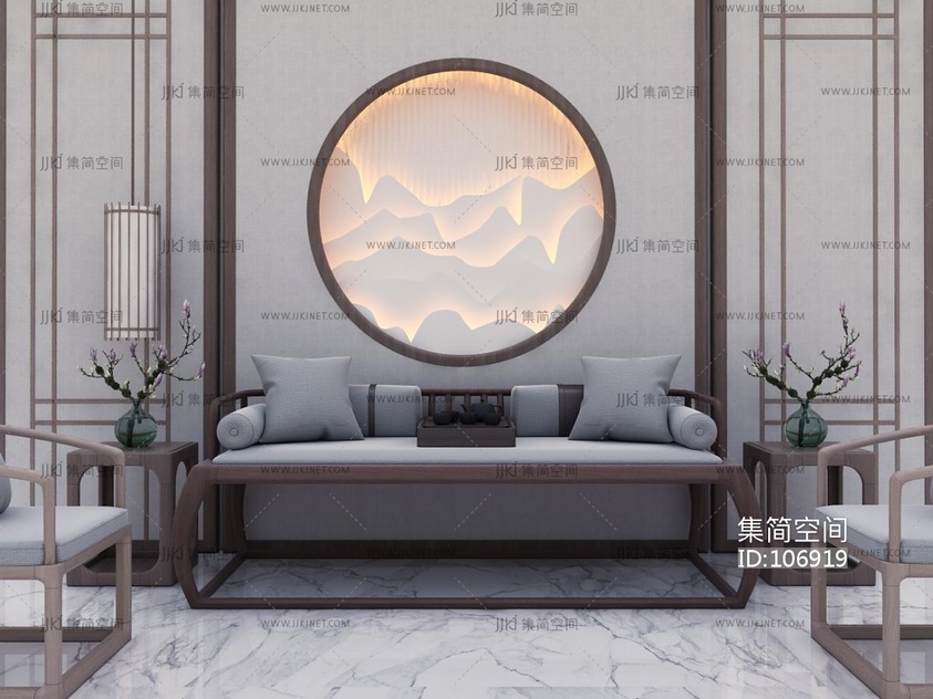 新中式罗汉床 3d模型下载 [模型ID:106919]