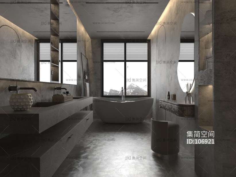 现代侘寂浴室卫生间 3d模型下载 [模型ID:106921]