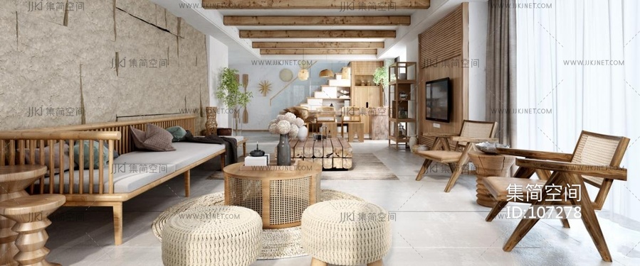 北欧自然风民宿客厅餐厅 3d模型下载 [模型ID:107278]