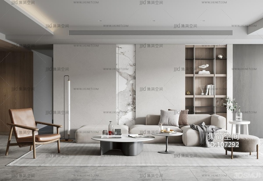中古风客厅,美式客厅,圆形茶几,装饰画,移动电视,3d模型下载
